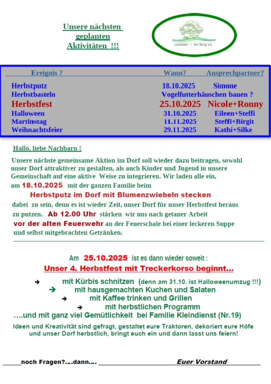 Neue Termine demnächst stattfindender Highlights im Herbst - siehe Termine-Box.